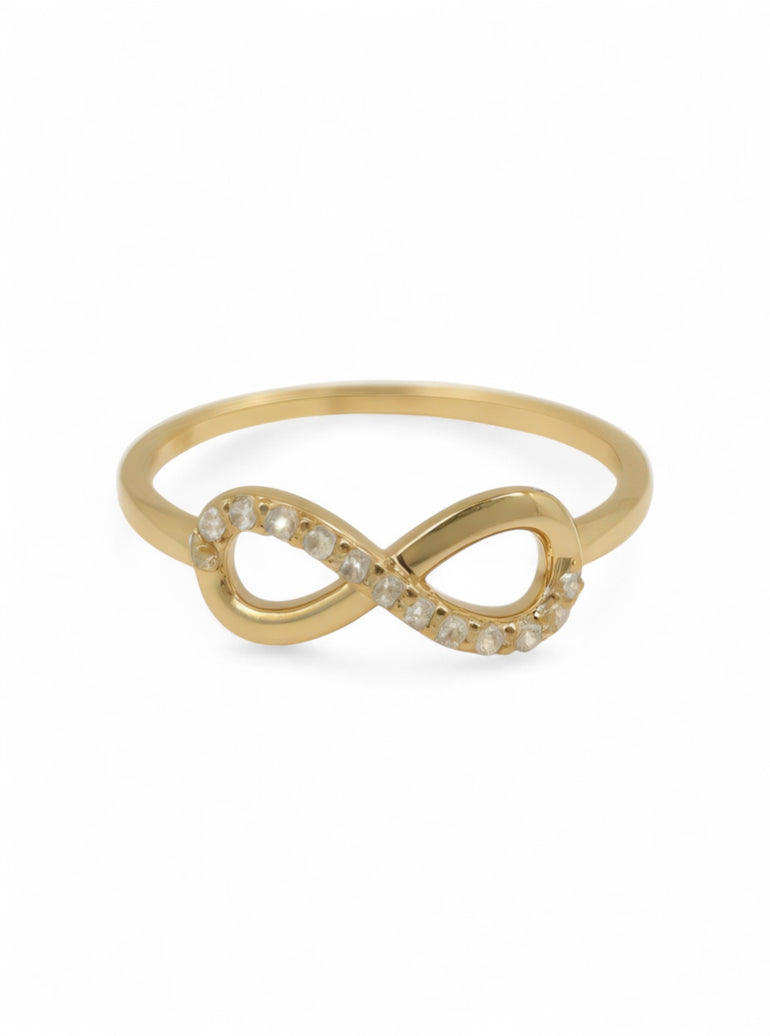 טבעת אינפיניטי יוקרתית | שיבוץ זירקונים | זהב צהוב 14 קראט | דגם מורן