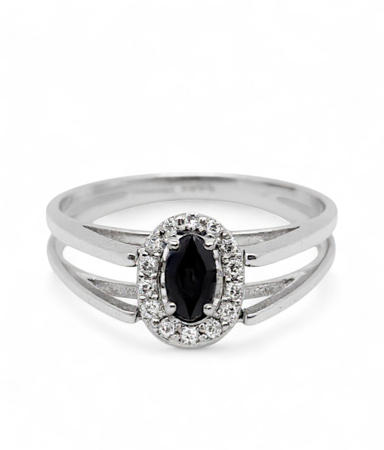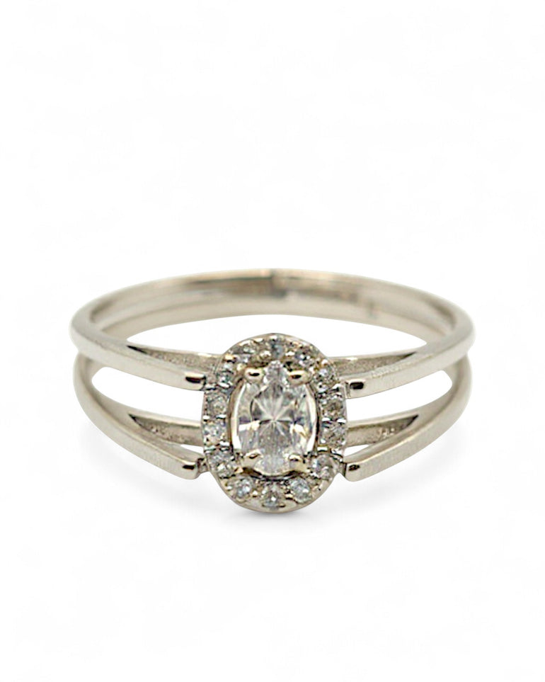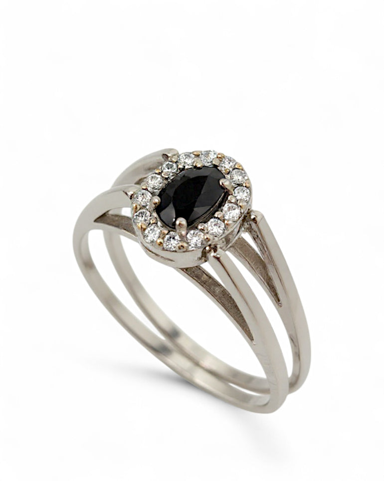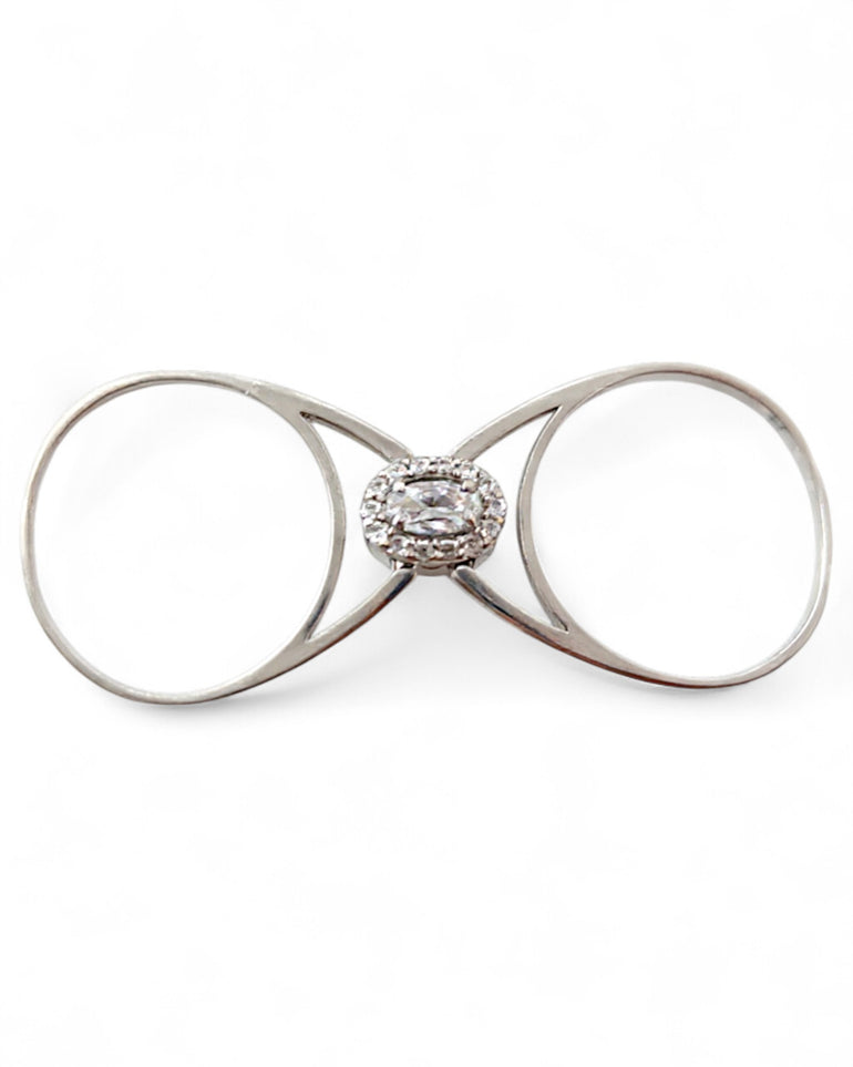 טבעת כפולה מתהפכת עם שתי אבני אובל משובצות זירקונים | שיבוץ אבני חן | זהב לבן 14 קראט | דגם נועה