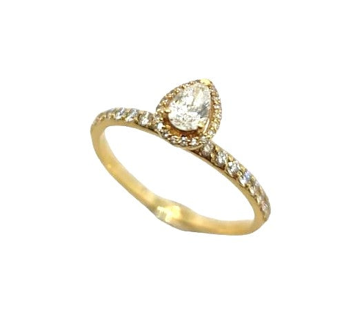 טבעת יהלומים הכי מיוחדת, להצעת נישואין או סתם לפנק את האישה בצורה קלאסית אשר משובצת אבן מרכזית בצורת טיפה למראה אצילי ומיוחד. טבעת יהלומים זהב צהוב 14 קראט משובצת 0.27 קראט יהלום ובצדדים משובץ 0.32 קראט יהלומים מבריקים ונוצצים שישדרג את הלוק היום יומי ויעניק לך זוהר וברק!