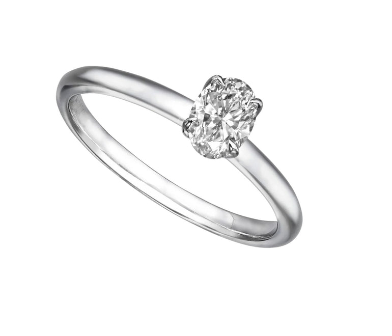 טבעת אירוסין | הצעת נישואין | יהלום מרכזי אבן אובלית 0.46 קראט| זהב לבן 14 קראט | דגם ברזיל