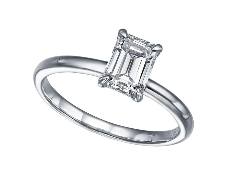 טבעת זהב לבן 14K, המשובצת יהלום מרכזי בצורת אמרלב  0.39ct, אשר מעוצבת כטבעת קלאסית, עם הגבהה של היהלום, אשר מדגיש את מידת הנוכחות של הטבעת על ידך. היהלום משובץ על 4 שיניים, שתופסות את האבן בחוזקה ועוצמה ונותנות ביטחון לאבן, בנוסף נותן גם מראה של כתר על ידך.