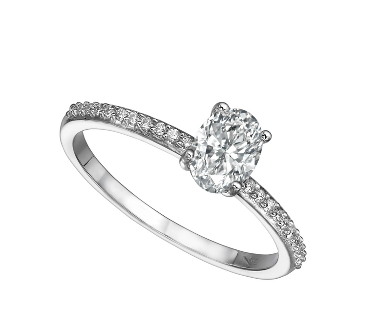 טבעת אירוסין | הצעת נישואין | יהלום אובלי ובצדדים 0.72 קראט | זהב לבן 14 קראט | דגם שיקגו