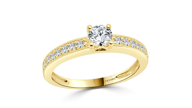 טבעת אירוסין יהלומים דגם קלאסי משובצת במרכז הטבעת יהלום גדול ובצידי הטבעת עוד שורת יהלומים עדינים, לפנק את האישה בכל ימיות השבוע.טבעת יהלומים זהב צהוב K14 קראט משובצת יהלומים 0.47ct קראט יהלום מבריק ונוצץ שישדרג את הלוק היום יומי ויעניק לך זוהר וברק