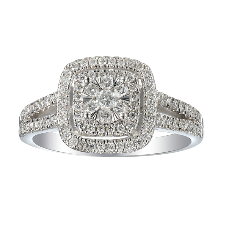טבעת יהלומים וינטג' | צורה מרובעת | משובצת יהלומים | זהב לבן 14 קראט | דגם ירדן