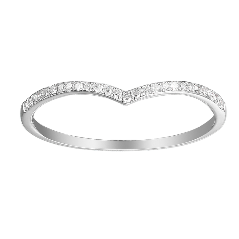טבעת יהלומים דגם R11881\DW הכי מיוחדת בצורת וי, משובצת אבני יהלומים על כל הטבעת . טבעת יהלומים זהב לבן 14 קראט משובצת 0.08 קראט .