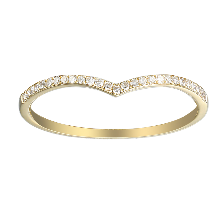 טבעת יהלומים דגם R11881\DW הכי מיוחדת בצורת וי, משובצת אבני יהלומים על כל הטבעת . טבעת יהלומים זהב צהוב 14 קראט משובצת 0.08 קראט .