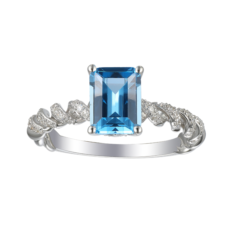 טבעת יהלומים דגם R11859\DW הכי מיוחדת בצורת מלבן, אבן מרכזית צבעונית אבן אקווה מרין תכלת ובצידי הטבעת של האבן המרכזית יש שיבוץ יהלומים  . טבעת יהלומים זהב לבן 14 קראט משובצת באמצע באבן אקווה מרין 1.74 קראט ובצדדים יהלומים שהסה"כ 0.16 קראט.