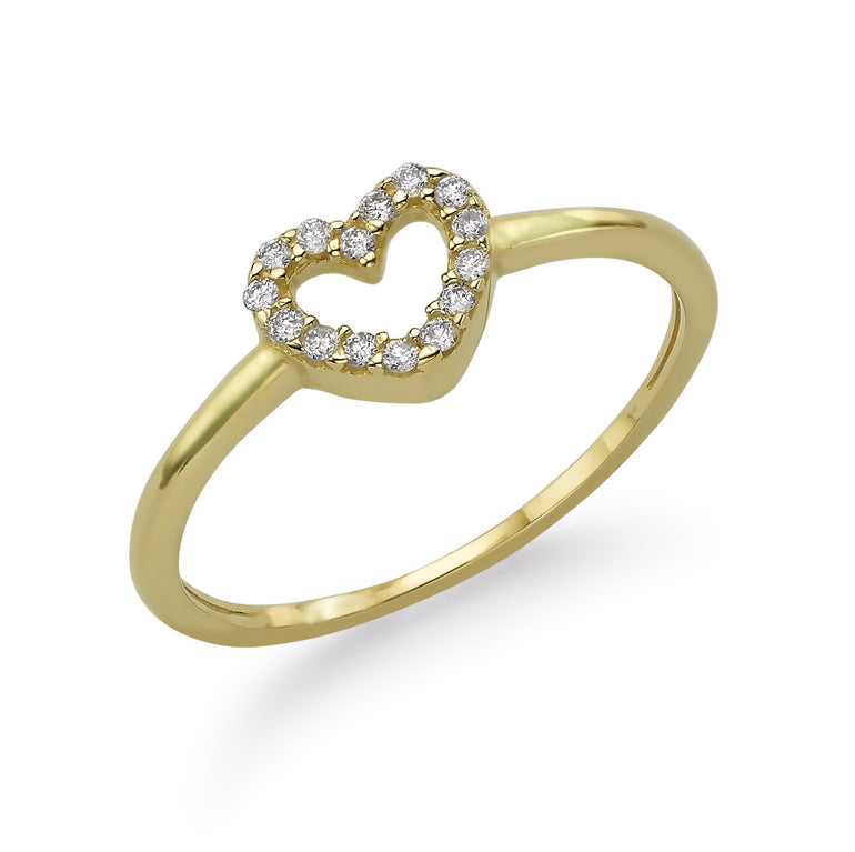 טבעת יהלומים בצורת לב הכי מיוחדת, לפנק את האישה בכל ימיות השבוע. .טבעת יהלומים זהב צהוב 14 קראט משובצת 0.09 קראט יהלום מבריק ונוצץ שישדרג את הלוק היום יומי ויעניק לך זוהר וברק