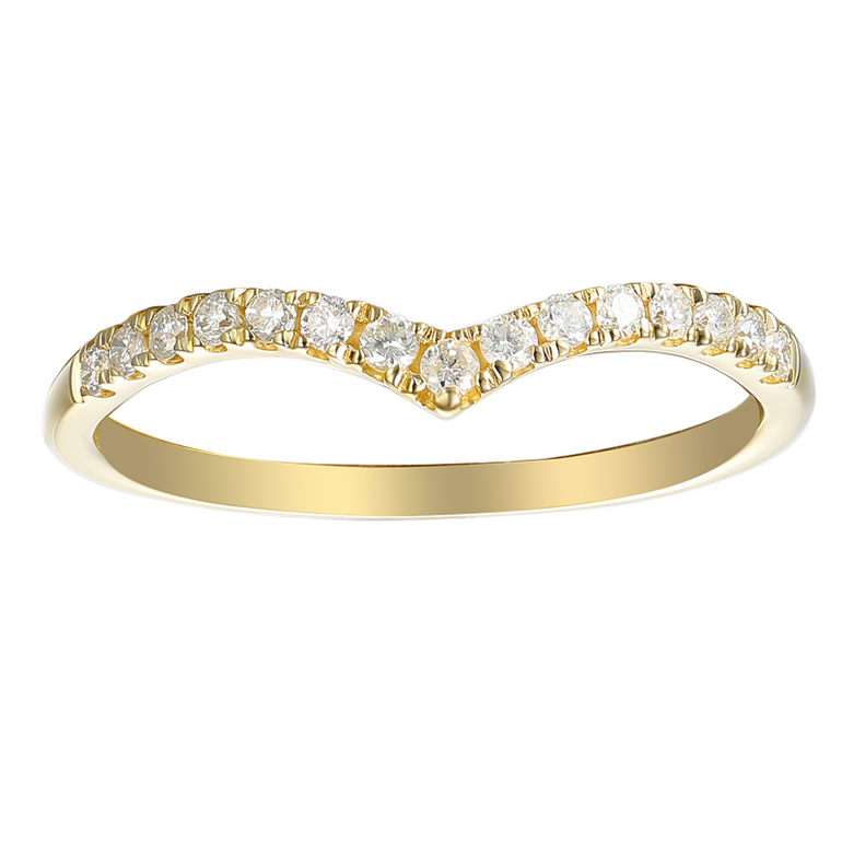 טבעת יהלומים דגם  R11815\DW הכי מיוחדת בצורת וי, משובצת אבני יהלומים על כל הטבעת . טבעת יהלומים זהב צהוב 14 קראט משובצת  0.21 קראט .