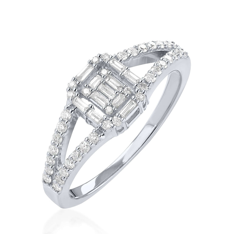 טבעת אירוסין הצעת נישואין | משובצת יהלומים | זהב לבן 14 קראט | דגם R-RR272