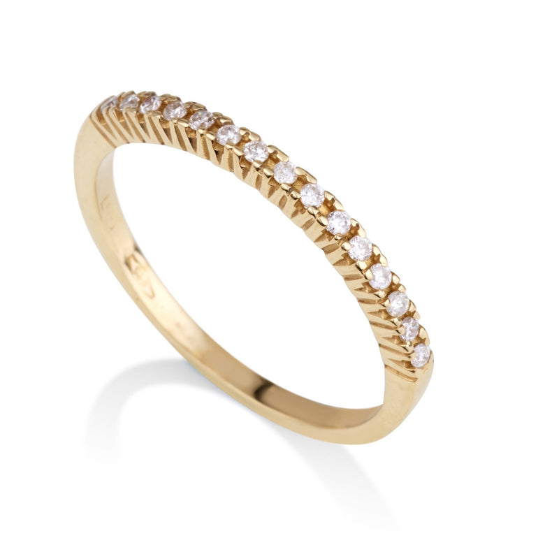 טבעת שורת יהלומים הכי מיוחדת, לפנק את האישה בכל ימיות השבוע. .טבעת יהלומים זהב צהוב K14 קראט משובצת 0.15 קראט יהלום מבריק ונוצץ שישדרג את הלוק היום יומי ויעניק לך זוהר וברק