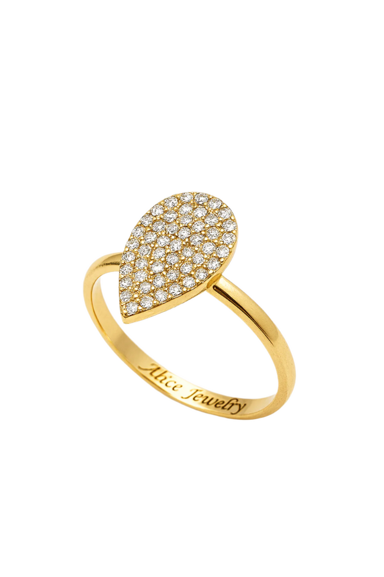 טבעת טיפה משובצת | זהב צהוב 14 קראט | משובצת זירקונים | דגם אביגיל
