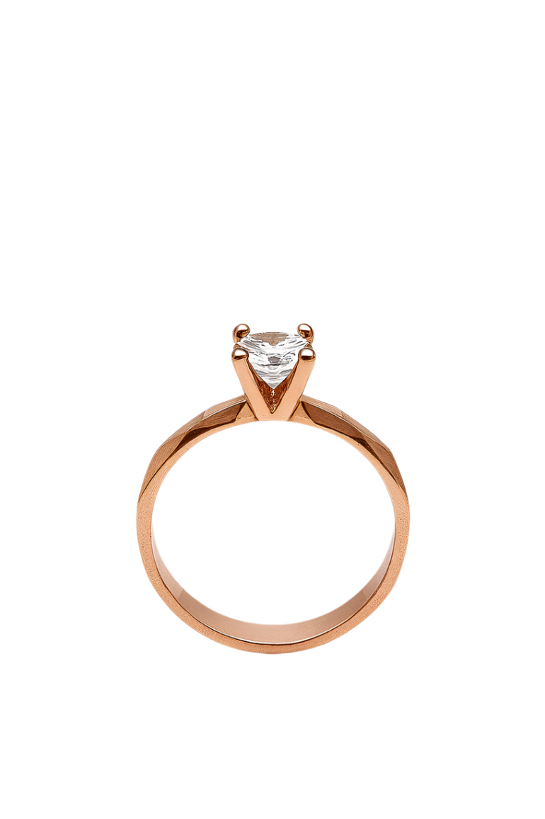 טבעת סוליטר גאומטרית | זהב רוז גולד 14 קראט | משובצת זירקון | דגם מיכל