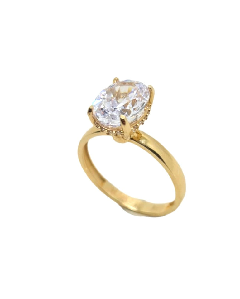 טבעת אבמן אובלית מרכזית גדולה | משובצת אבן זרקון | זהב צהוב 14 קראט | דגם רז