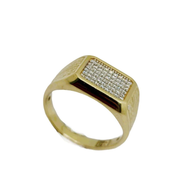 טבעת חותם מיוחדת לגבר בשיבוץ  זירקונים מזהב צהוב 14 קראט.
