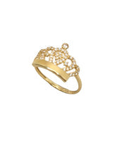 טבעת כתר לחריטה | פלטת חריטת שם | משובץ אבני זרקון | זהב צהוב 14 קראט | דגם סנדרה