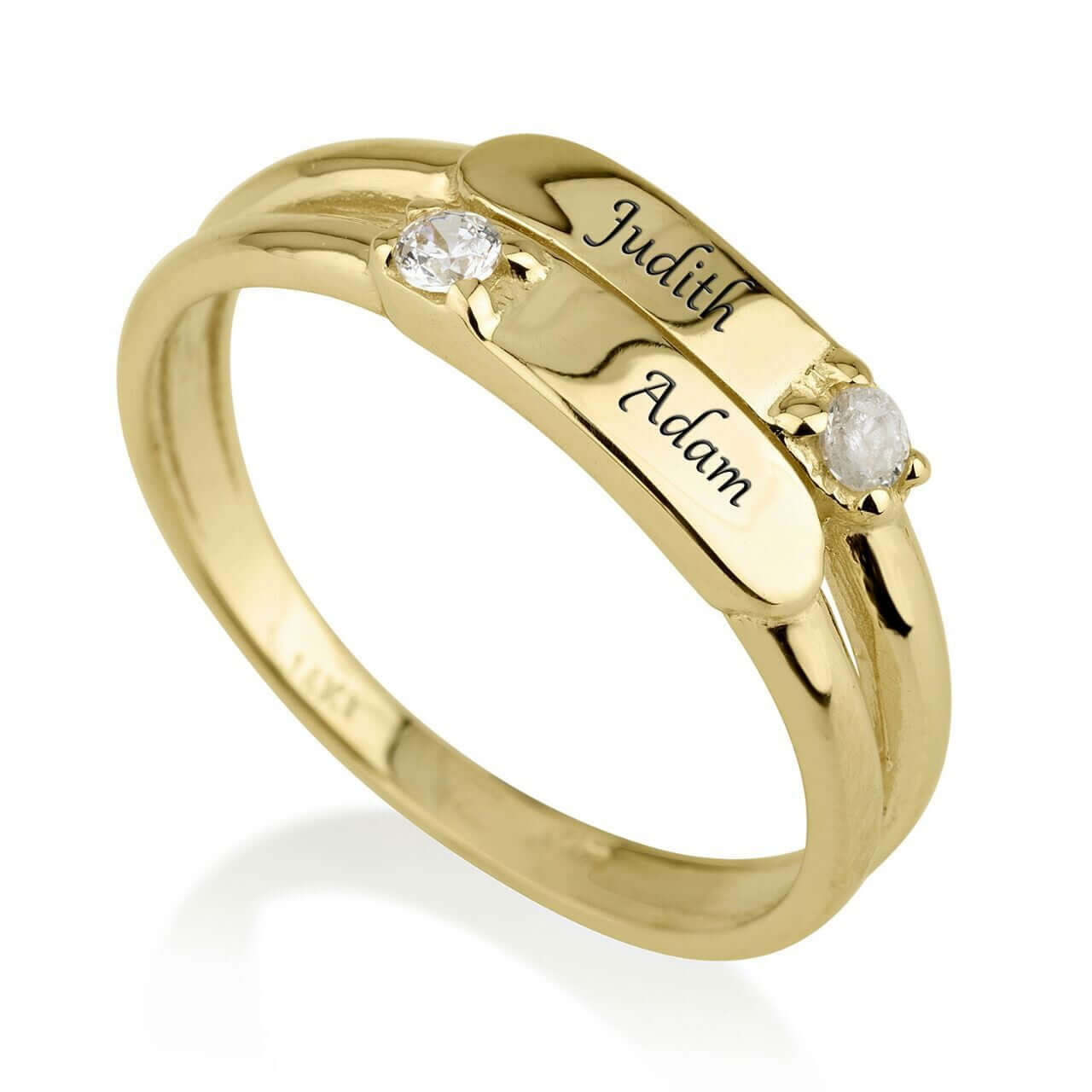 טבעת חריטת שמות | שתימ שורות של חריטות | זהב צהוב 14 קראט | דגם רון