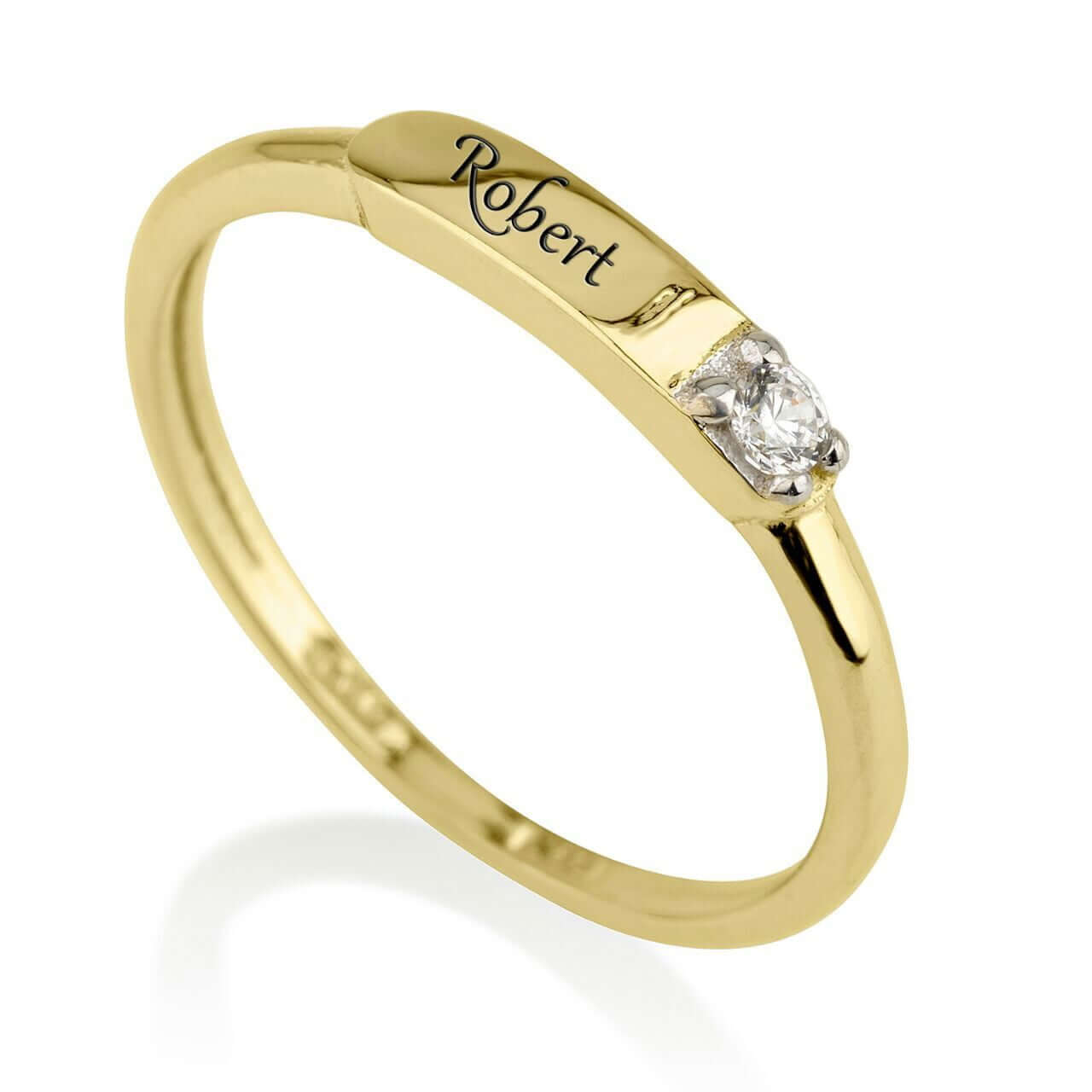 טבעת חריטת שם | שורה אחת של חריטה | זהב צהוב 14 קראט | דגם מייקל