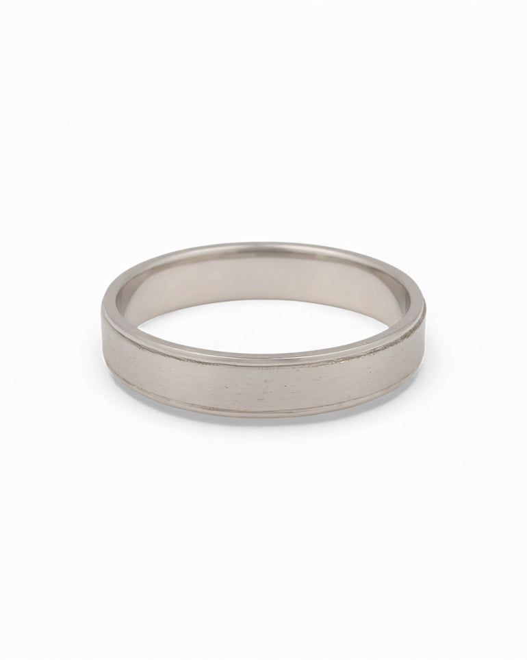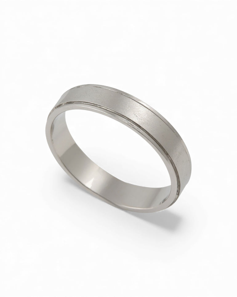 טבעת נישואין בעלת מראה מינימליסטי ונקי, עם גוף מרכזי חלק בגימור מט עדין המקנה לה אופי גברי ושקט. הדפנות המלוטשות מספקות ניגוד מבריק ומדויק, שמדגיש את הקו האלגנטי של העיצוב. שילוב הטקסטורה המט עם הזהב הלבן יוצר טבעת קלאסית, נוחה ליום-יום ואידיאלית למי שמעדיף סגנון מאופק ולא מתבלט.