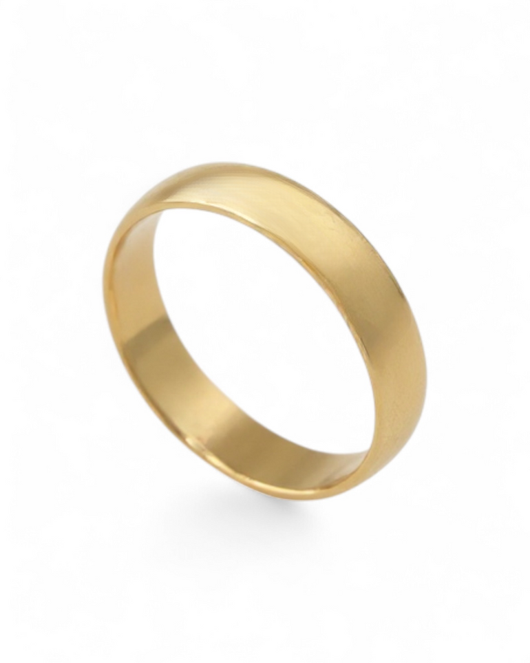 טבעת נישואין רחבה בעיצוב חלק, נקי וקלאסי — ללא טקסטורות וללא ריקועים. הפרופיל החיצוני מעוגל בעדינות לקבלת מראה יוקרתי ונוח ללבישה, והחיתוך המדויק שומר על קווים אחידים ומלוטשים לכל אורך ההיקף. רוחב 4 מ"מ מעניק איזון מושלם בין עדינות לגבריות ומתאים למי שמעדיף טבעת עם נוכחות אלגנטית ושקטה.