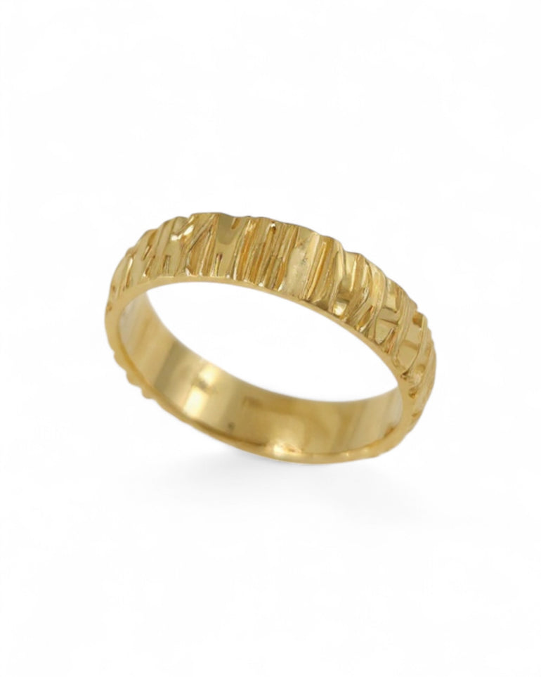 טבעת נישואין לנשים | טקסטורת פסים אנכיים מחורצים | זהב צהוב 14 קראט | דגם שלי