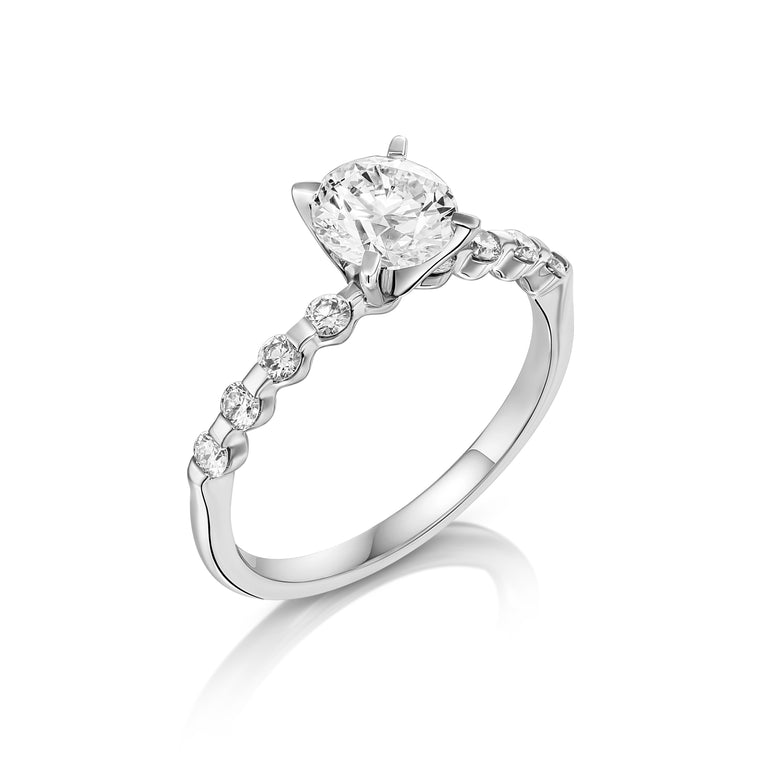 טבעת סוליטר עם שיבוץ צדדי | יהלומי מעבדה CVD | גודל כולל 1.39 קראט | זהב לבן 14 קראט | דגם לירי