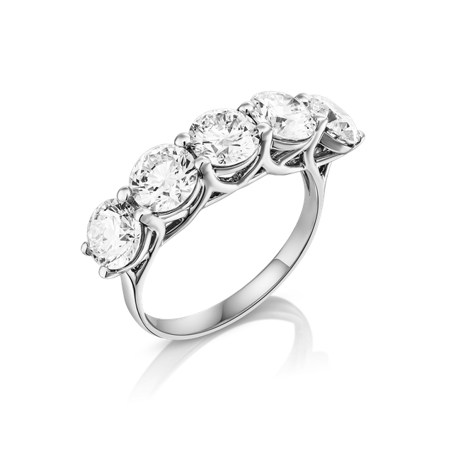 טבעת שורת אבנים | יהלומי מעבדה CVD | גודל 3.75 קראט | זהב לבן 14 קראט | דגם אימבר