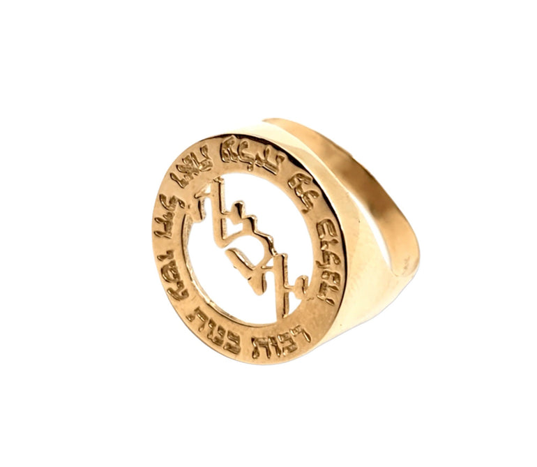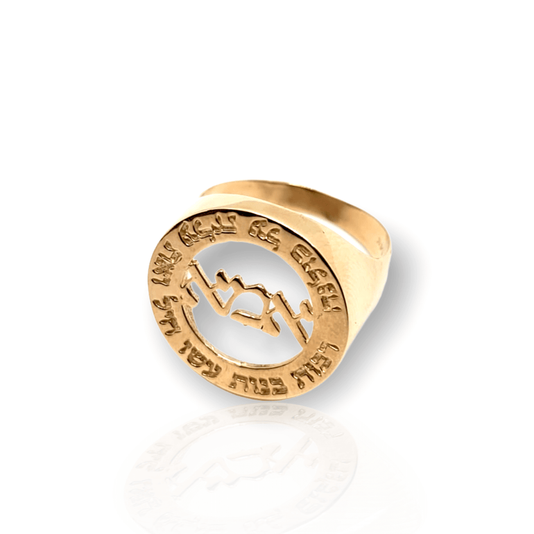 טבעת חותם עם הכיתוב אמא | ברכה חרוטה סביב האמא | זהב צהוב 14 קראט | דגם אורנית