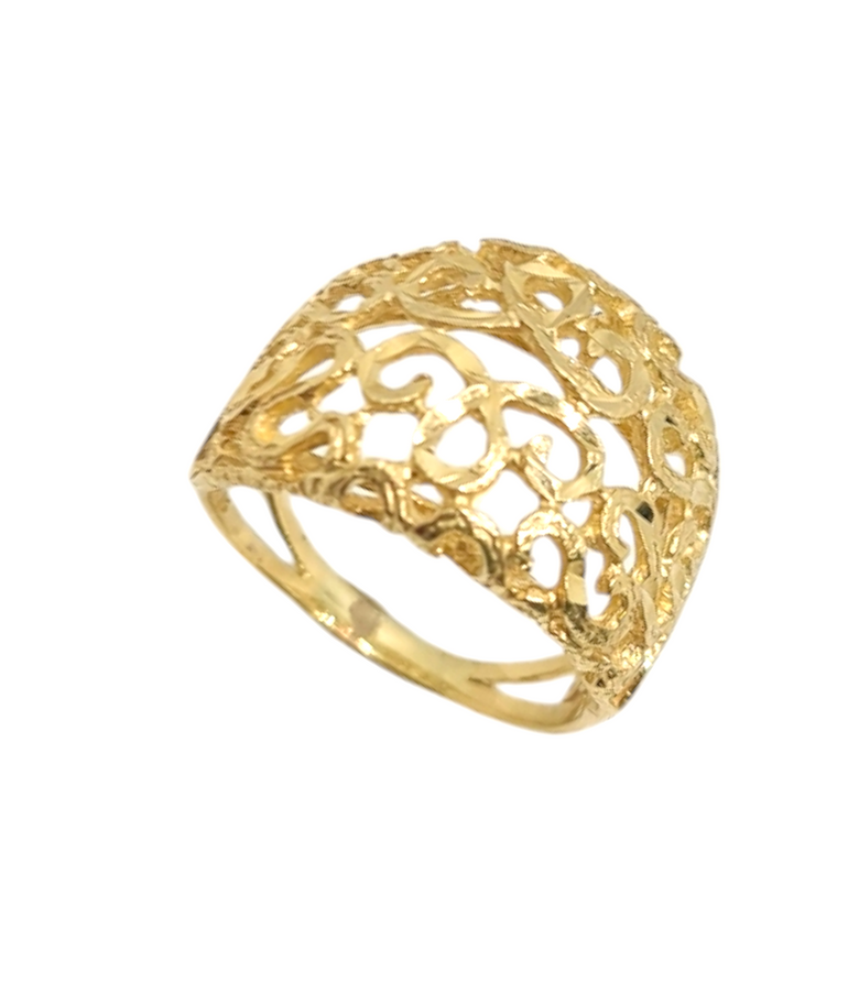 טבעת מעוצבת תחרה | חלקה מבריקה | זהב צהוב 14 קראט | דגם שוהם