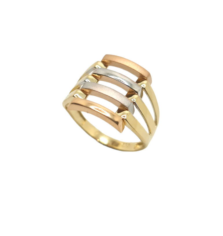 טבעת קשתות שורות לחריטה | משולבת שלושה צבעים | זהב צהוב 14 קראט | דגם שובל