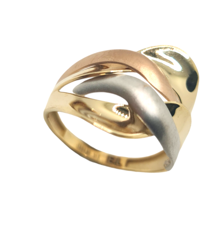 טבעת קשתות שורות | משולבת שלושה צבעים | זהב צהוב אדום ולבן 14 קראט | דגם ירין
