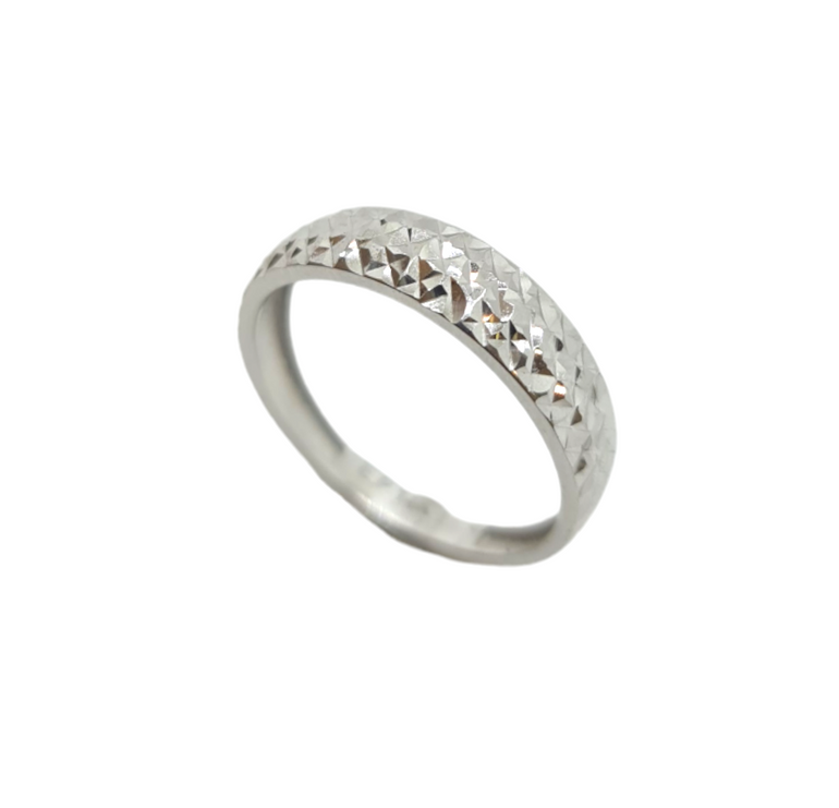 טבעת שורה חצי עגול | חיתוכי לייזר קלאסית | זהב לבן 14 קראט | דגם שרונה
