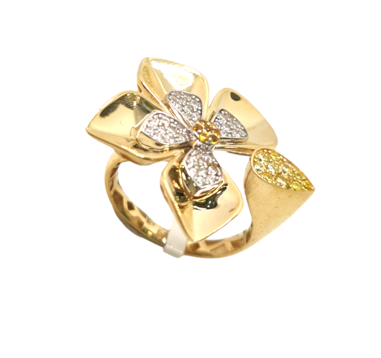 טבעת מעוצבת פרח | חלק מבריק | זהב צהוב 14 קראט | דגם יערה
