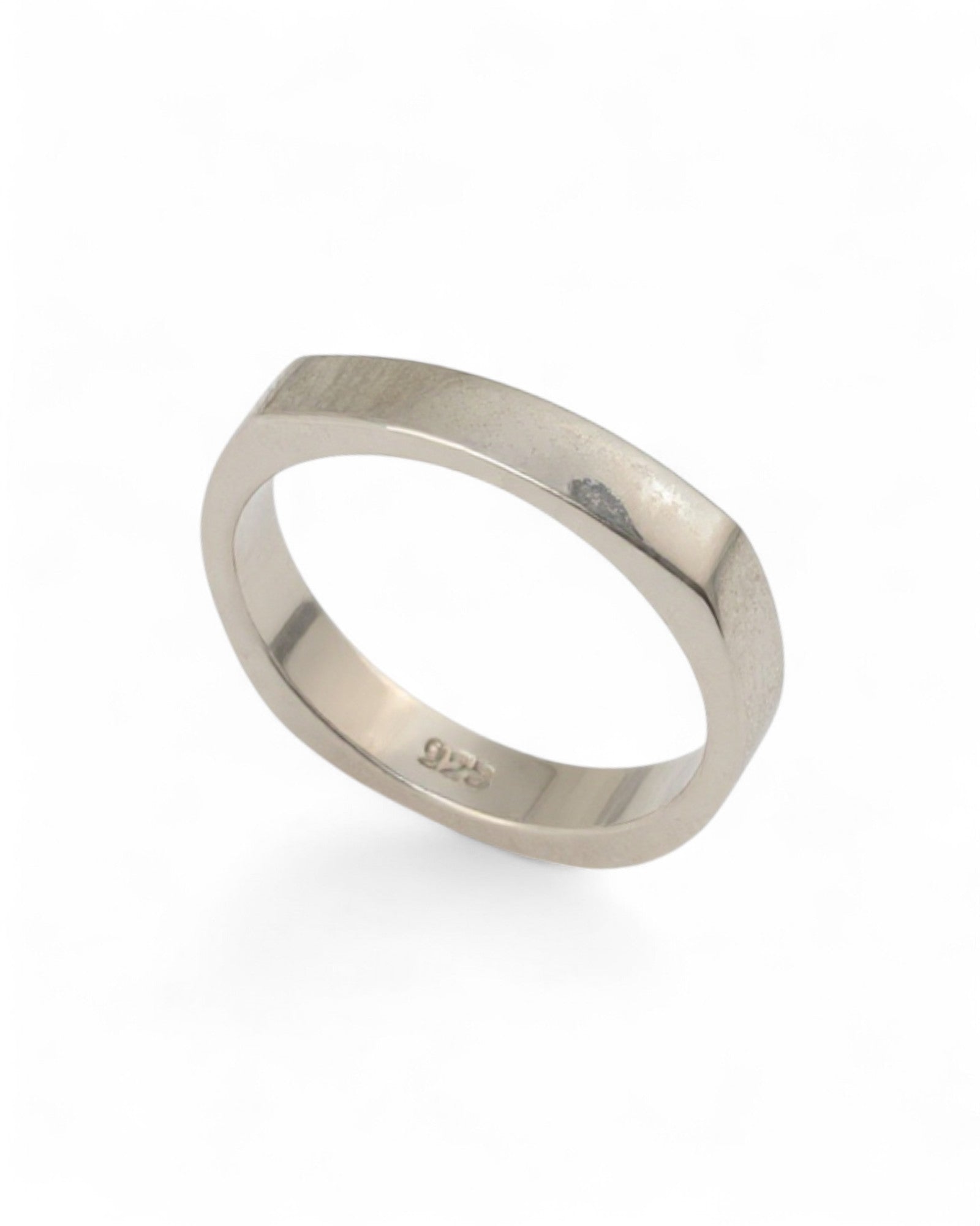 טבעת בן איש חי רחבה | מרובע מבחוץ ועגול מבפנים | כסף טהור | חריטת אות ה'