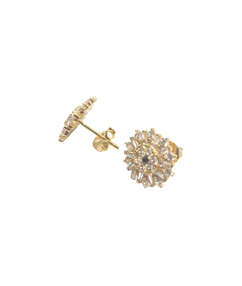 עגילים פתית שלג | משובץ אבני זרקון בגטים | זהב צהוב 14 קראט | דגם שני