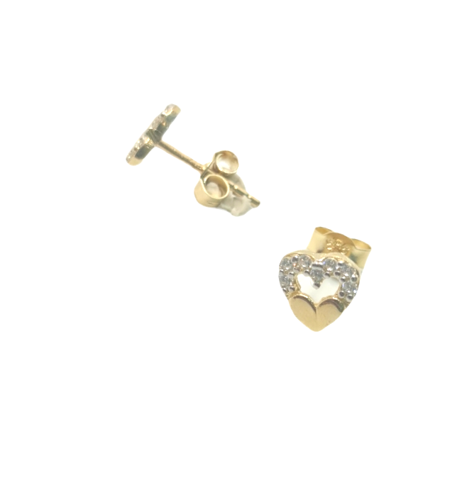 עגילים צמודים לילדות | בצורת לבבות | זהב צהוב 14 קראט | דגם רפאל