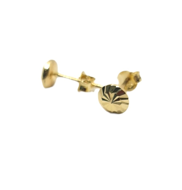 עגילים עדינים  צמודי אוזן לילדות בצורת  עיגול חרוטים בחיתוכי לייזר, מזהב צהוב 14 קראט . העגיל מיוחד בצורתו ונותן מראה קלאסי ועדין.  תכשיט שישדרג לך את המראה, מתאים  לכל אישה/ילדה