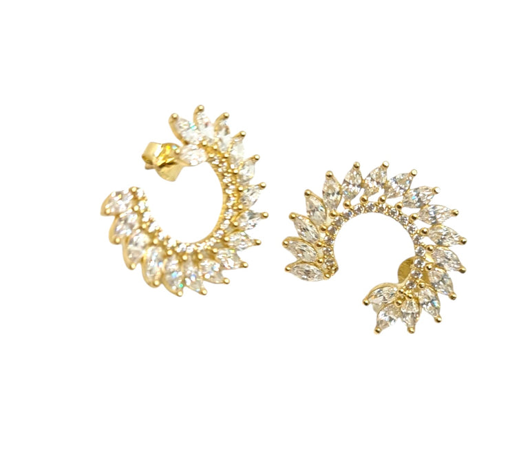 עגילים צמודים מניפה | משובץ אבני זירקון | זהב צהוב 14 קראט | דגם שובל