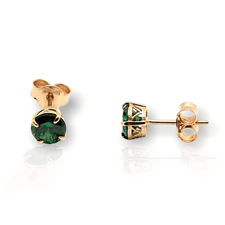 עגילים צמודים לאוזן | אבן צבעונית ירוקה | זהב צהוב 14 קראט | דגם תמר