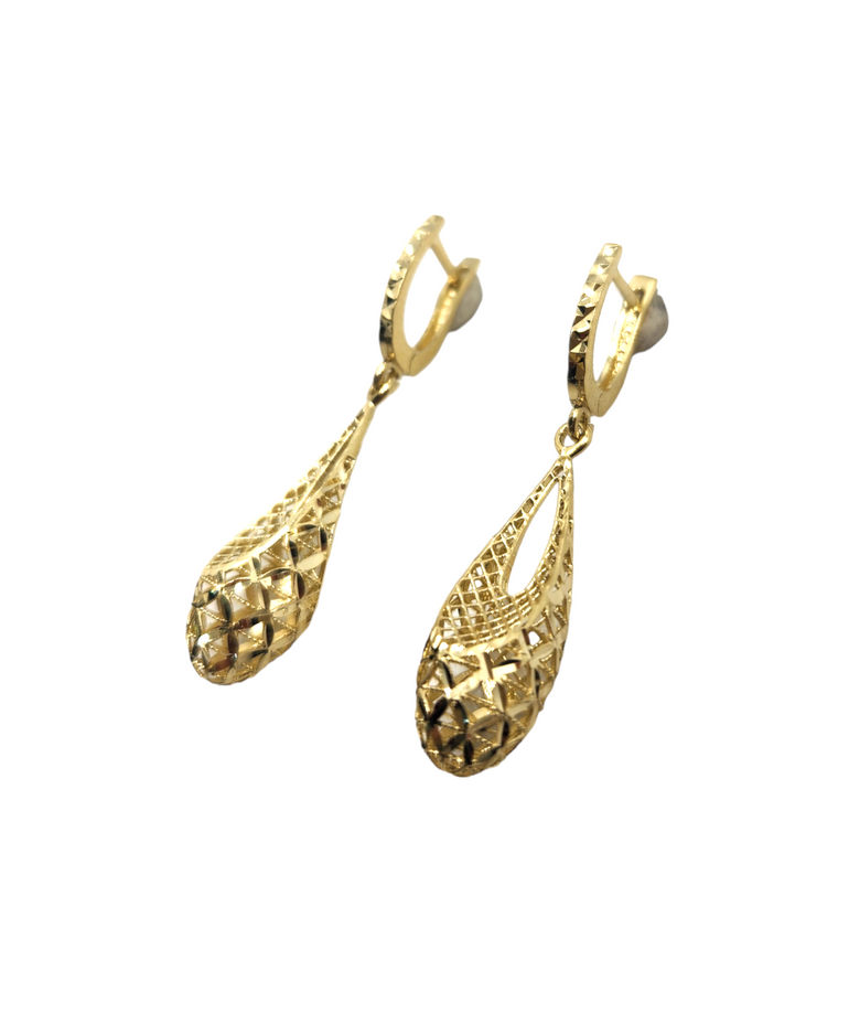 עגילים נופלים תחרה סוגר אנגלי | חיתוכי לייזר | זהב צהוב 14 קראט | דגם רפאל