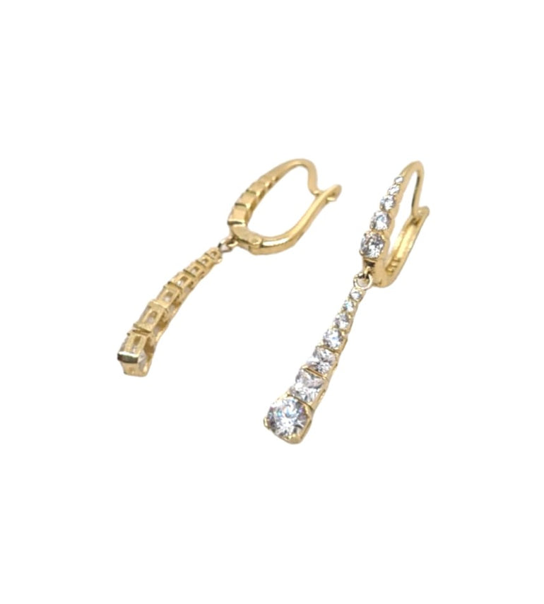 עגילים נופלים תלויים | משובצים זרקונים | בצורת פרמידה | זהב צהוב 14 קראט | דגם אורי