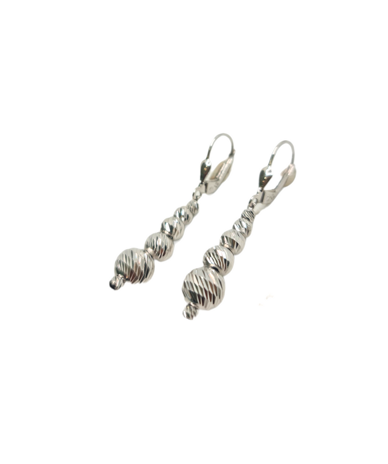 עגילים תלוים נופלים כדורים חרוטים בחיתוכי לייזר נוצצים ומבריקים עדין וקלאסי במראה בנוסף העגיל מחובר לסוגר אנגלי . נותן גם מראה עדין
