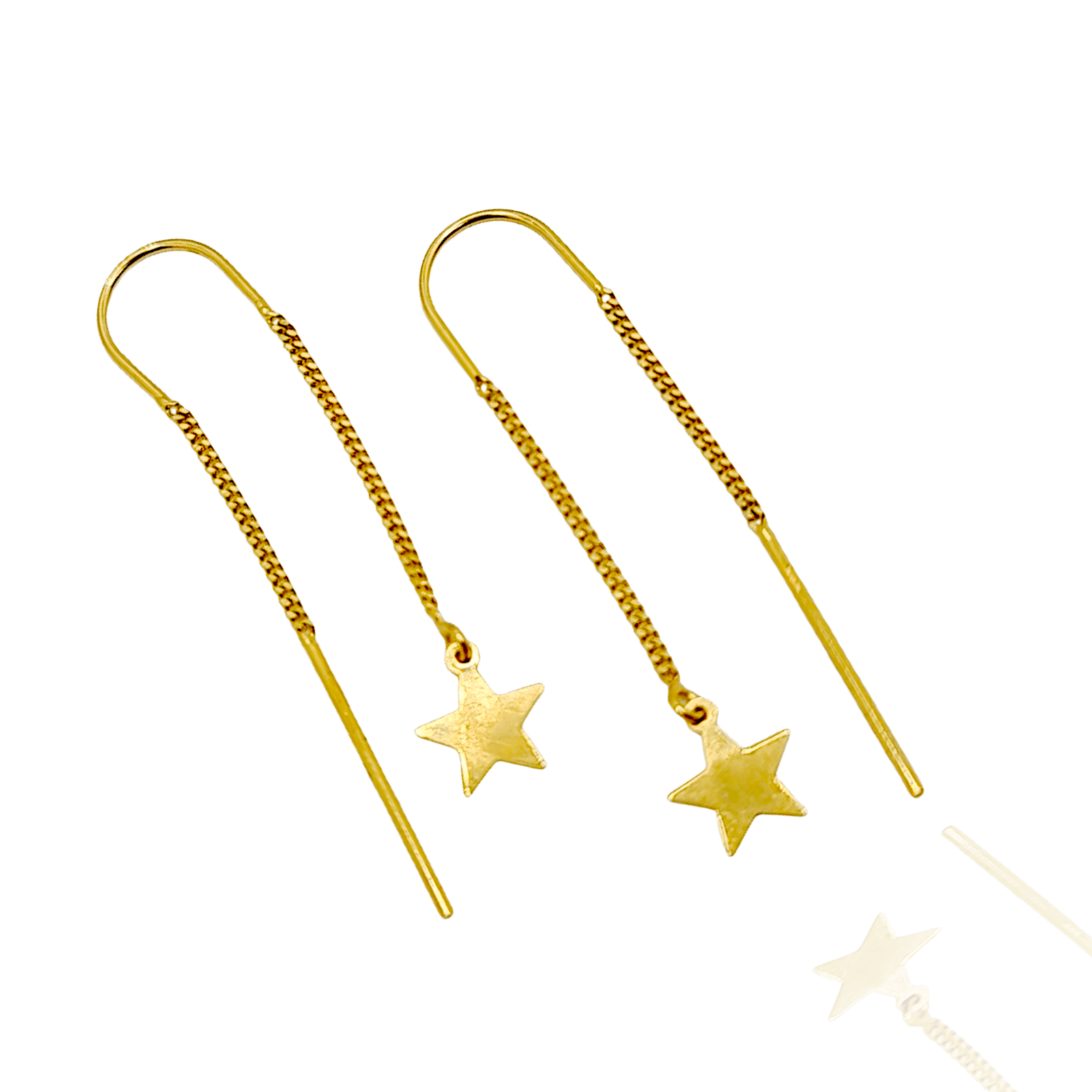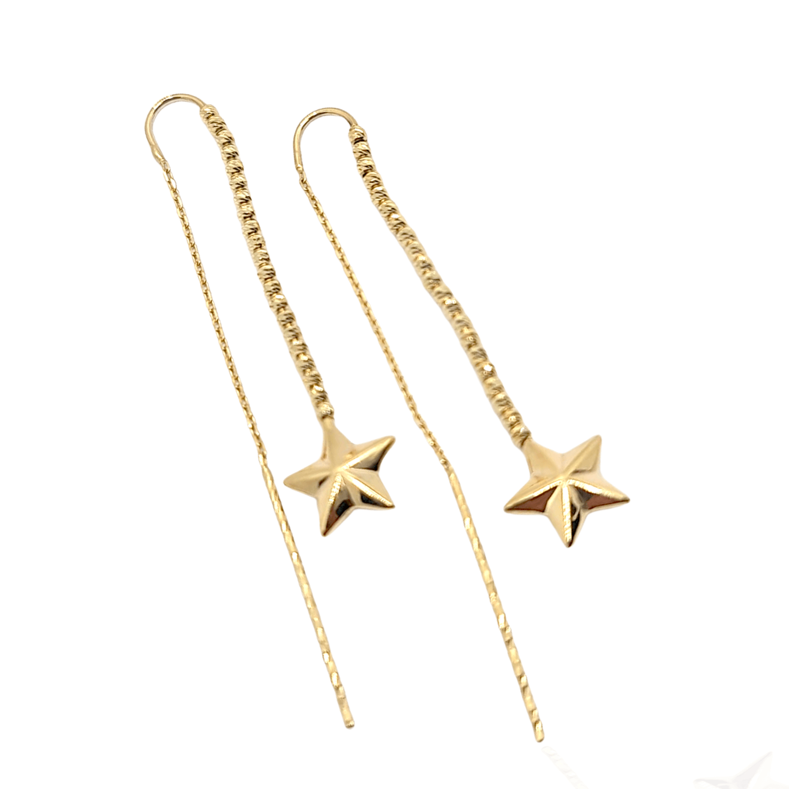 עגילים נופלים | מחוברים שרשרת ותליון כוכב | זהב צהוב 14 קראט | דגם שריי