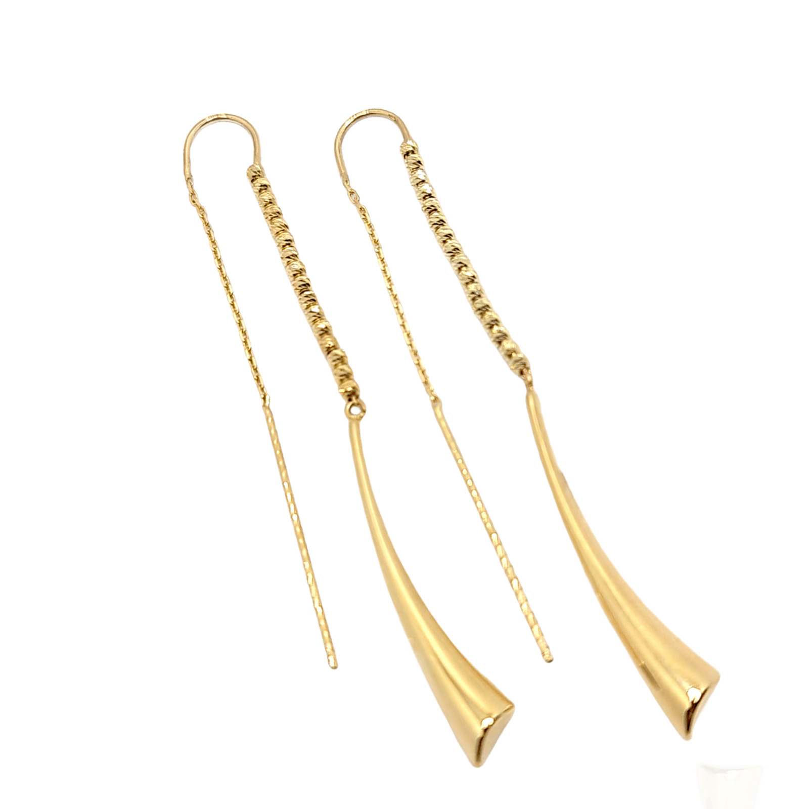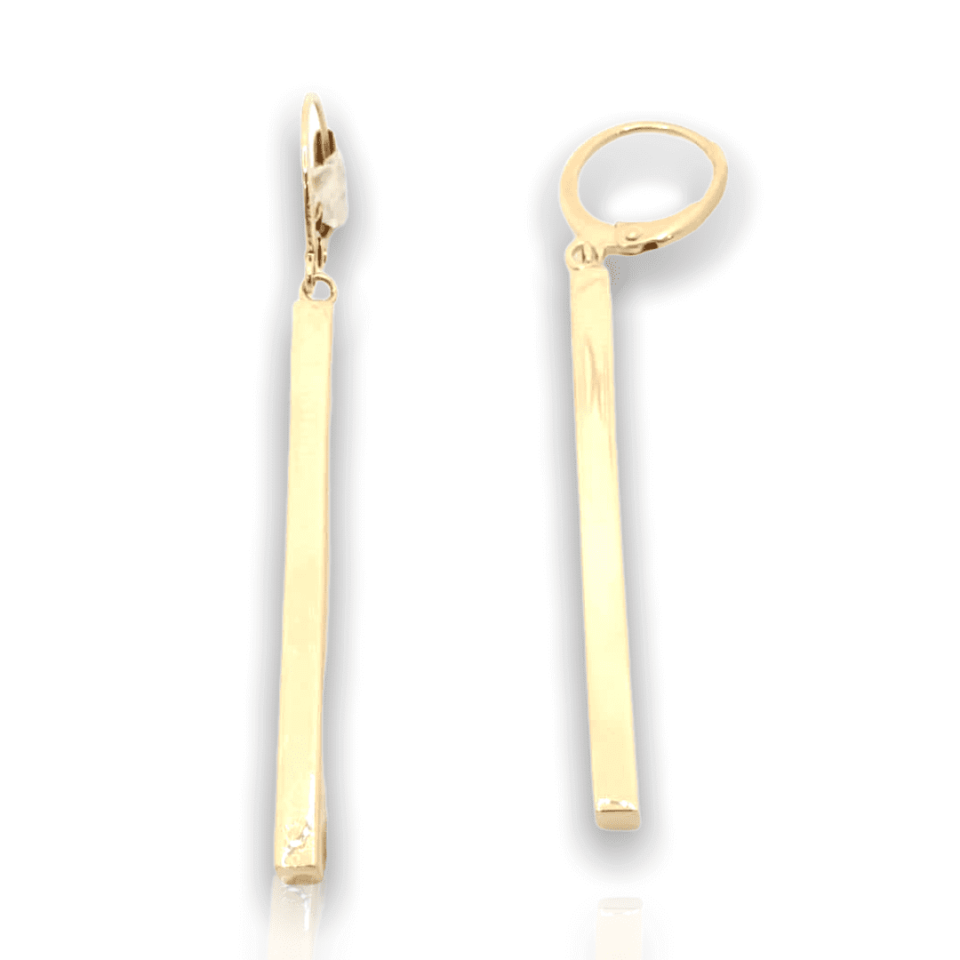 עגילים נופלים מוט | חלק מבריק | זהב צהוב 14 קראט | דגם קרן
