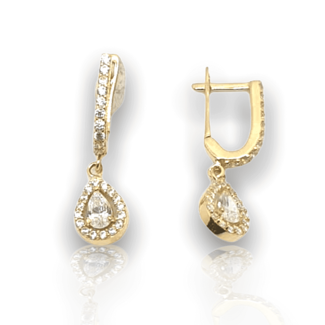 עגילים נופלים | תליון מרובע משובץ זרקונים | זהב צהוב 14 קראט | דגם אושרית