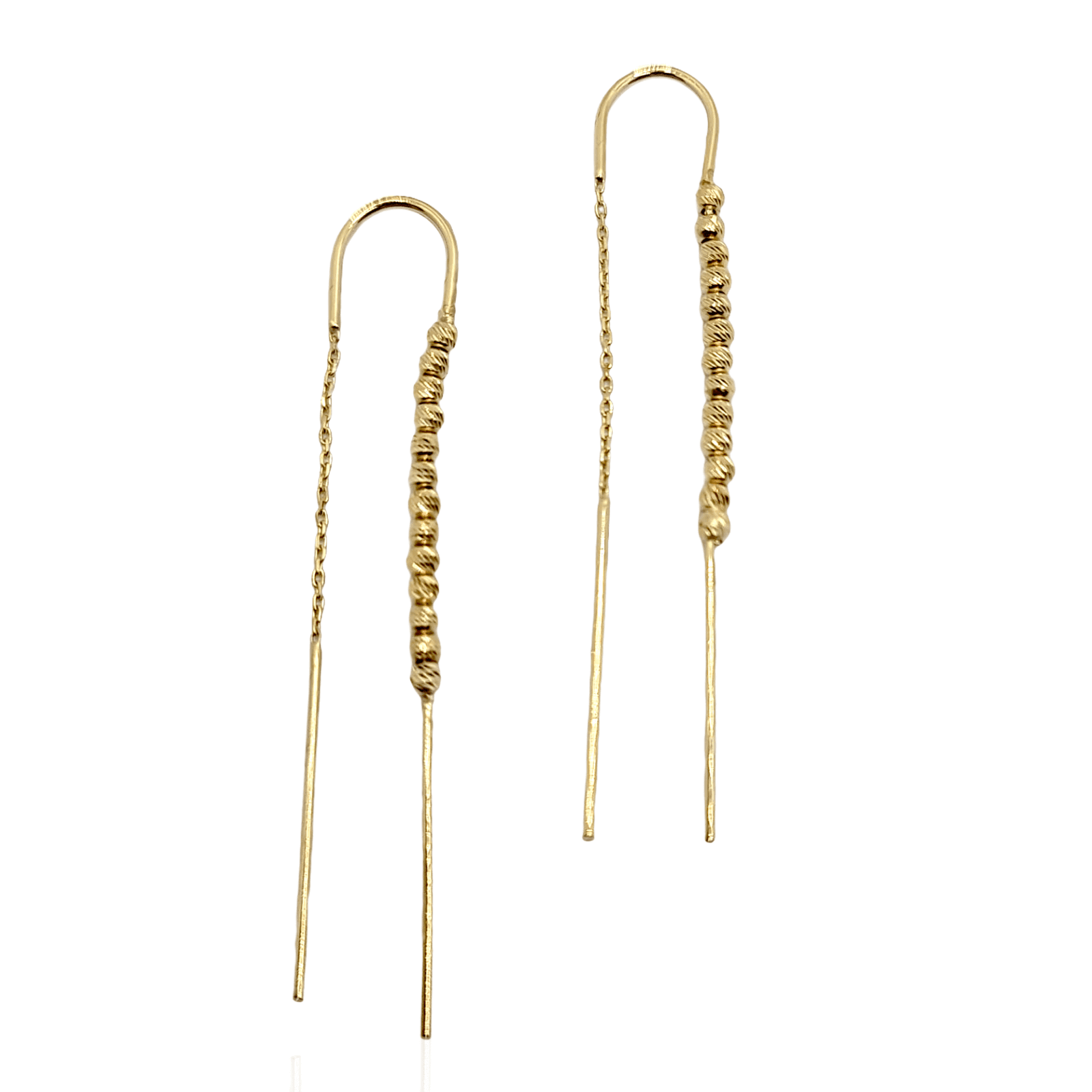 עגילים נופלים | משולב כדורים ומוט חלק מבריק | זהב צהוב 14 קראט | דגם אור