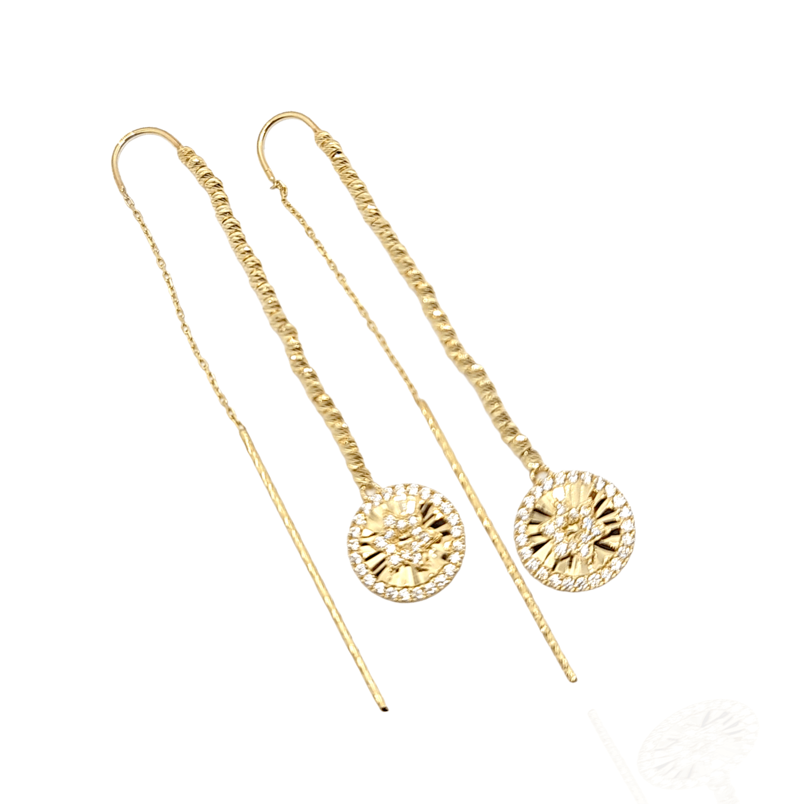 עגילים נופלים | כדורים משולבים תליון עגול | זהב צהוב 14 קראט | דגם איריס
