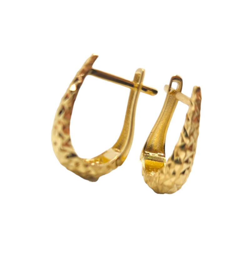 עגילים חצי חישוק בצורת בננה | קלאסים וחרוטים בחיתוכי לייזר | זהב צהוב 14 קראט | דגם עמית