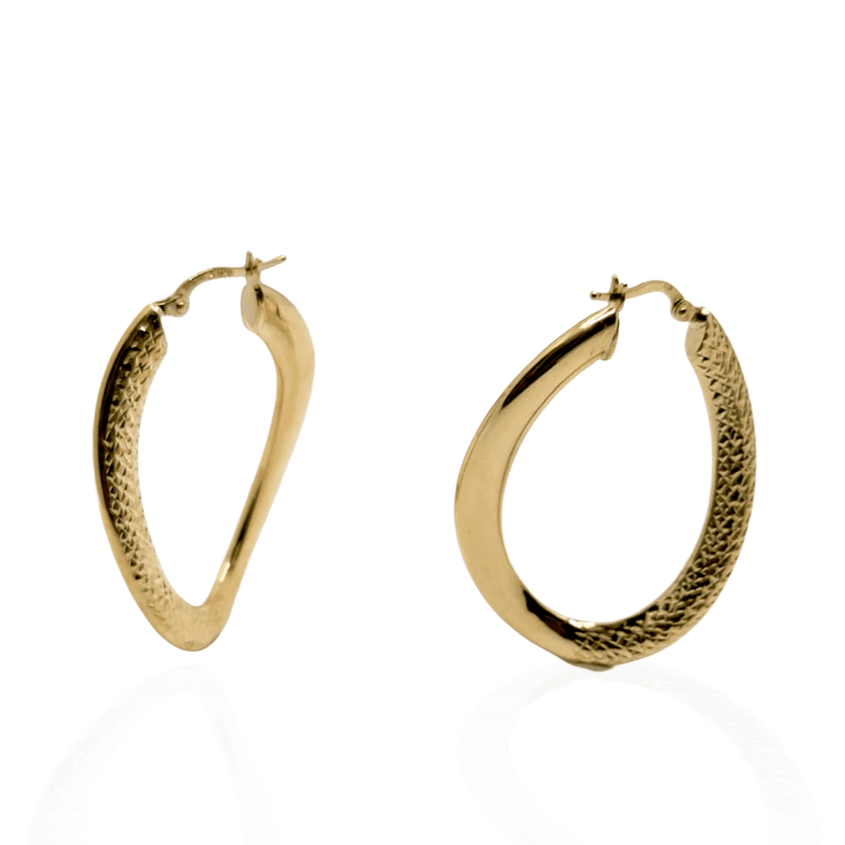 עגילי חישוק בצורה לא סימטרית | חיתוכי לייזר | זהב צהוב 14 קראט | דגם און