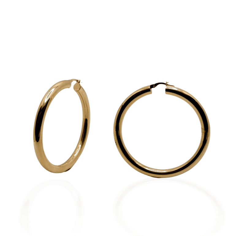עגילי חישוק עבים | גודל בינוני | זהב צהוב 14 קראט | דגם אורלי